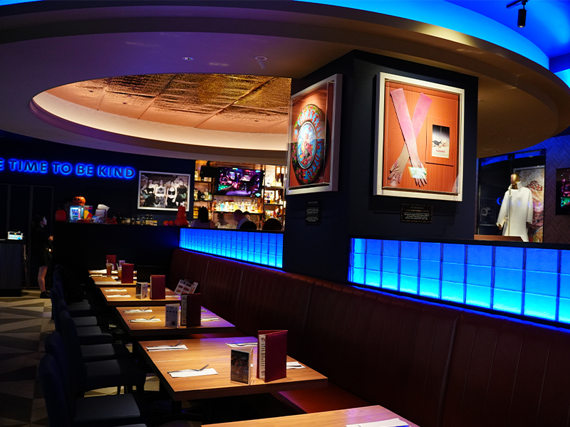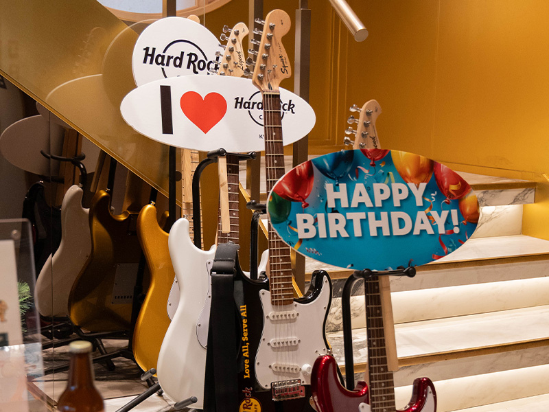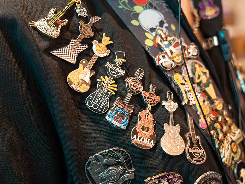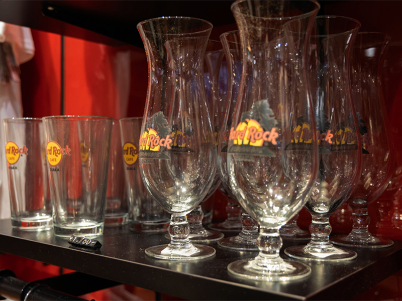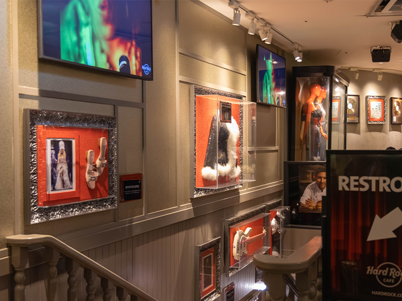世界中のミュージシャンの衣装や楽器が所狭しと並ぶ店内は、ハードロックカフェの楽しみのひとつ。飾られている「メモラビリア」は店舗により様々。各店を巡り、ミュージシャン達の歴史に思いを馳せてみてはいかがでしょうか。