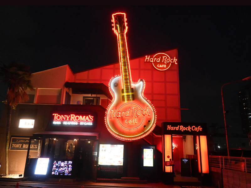 ハードロックカフェが出店するのは、世界の中でも代表的な都市の中心地。そのほかテーマパークの目の前や、駅からすぐ近く、観光の中心となる土地などに店舗を構え、その土地ならではの楽しみ方を提供しています。