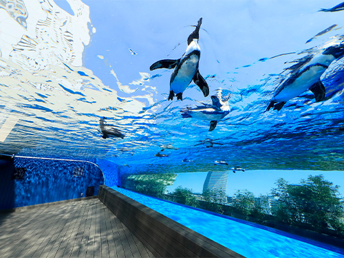 まるでペンギンが飛んでいるように見える「天空のペンギン」をはじめとする話題の展示が目白押し!生きものに癒されながら都会のオアシスでゆったりとした朝の時間を♪