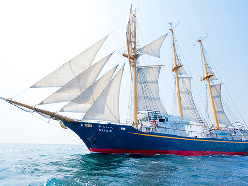 国内で唯一一般の方が乗船できる帆船「みらいへ」を貸し切り、夢の体験航海ができる特別イベント!実際に舵を動かしたり、みんなでロープを引くセイルトレーニングなども♪