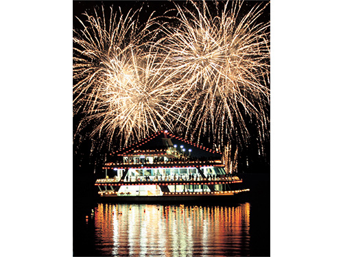 箱根芦ノ湖で開催される「湖水祭花火大会」を船上のデッキや船室から鑑賞できる特別感満載の夏イベント!幻想的な雰囲気の中で打ち上げられる花火をゆったり満喫♪
