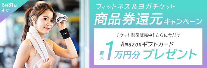 ホーム フィットネス スポーツクラブ ティップネス 20回券購入でAmazonギフトカード2,000円分プレゼント! 対象会員種類の月会費が最大1,100円割引!! スポーツクラブNAS 利用券 25枚回券購入でAmazonギフトカード2,000円分プレゼント!好きな時につかえる回数券★まとめ買いがオトク!この機会に運動習慣をつけよう♪ ジェクサーフィットネスクラブ 都度利用 1回利用1,210円!全店が駅チカ。最新マシンからスパやエステまで備えた総合型の施設です。 もっと見る > 24時間ジム FASTGYM24 月会費 24時間いつでも 自分スタイルで♪月会費を通常料金より550円OFF! 【近畿・東海・中国・東北】エニタイムフィットネス 24時間年中無休!国内1,000以上の店舗で利用OK! FITBASE24都度利用 都度利用 1,210円! 会員制フィットネスクラブを月会費不要で都度の利用が可能! もっと見る > パーソナルジム RIZAP(ライザップ) それぞれの体格、体重、体質に合わせた目標設定・専用プログラムをご提供し、結果にコミット致します。 かたぎり塾 パーソナルジム業界店舗数NO.1 体験後当日入会で、入会金55,000円が無料 24/7Workout 完全個室・マンツーマン指導のダイエットジム!全人類を人生史上最高の身体に導く! もっと見る > スタジオ系 リフィナス キックボクシングスタジオ 対象のコースが毎月月額1000円引きで利用可能! ボディメイクやストレス発散にも!楽しんで通うことができるキックボクシングジム! FEELCYCLE 話題の暗闇バイクエクササイズ!全身運動で基礎代謝UP&食べても痩せるカラダに♪ 女性だけの30分フィットネス カーブス 女性専用、1回30分、予約なし気軽に楽しく運動できる♪ もっと見る > オンラインフィットネス トゥエンティーフォーセブンオンラインフィットネス まるでジムに通っているような感覚!?ライブレッスンで本格的なワークアウト! LEANBODY/自宅でできるフィットネス動画配信 テレビや雑誌で話題の有名インストラクターのレッスンが受け放題♪ トルチャ/オンラインでフィットネスクラブ品質体験 選抜されたインストラクターのLIVEレッスンとビデオレッスンが初月無料! もっと見る > ヨガ・ピラティス zen place 1回券購入でAmazonギフトカード500円分プレゼント! 【初回限定】全国100店舗以上のピラティス・ヨガグループレッスン体験2,200円→無料! ホットヨガスタジオLAVA 一度で実感できる驚きの発汗!レッスンが終わって、肌の違いに驚くお客さまが続出しています。 もっと見る > もっと楽しく活用するために